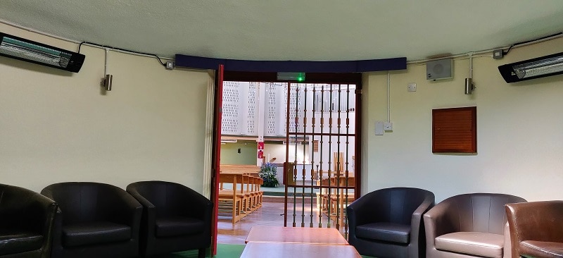 “Our Lady of Lourdes church is a round building with the main Church in the centre and several storage and function rooms around the outer edge. The two Colorado R heaters recommended by Matthew have been perfect. Our electrician had no problem connecting them so installation was quick. The groups who meet in the room have been so grateful. The heaters are logical to turn on and adjust; the heat-up time is almost instant and the heat level is comfortable. It’s not a drying heat. They are absolutely silent – in addition to the discussion groups, we now hold meditation sessions in the room, something we couldn’t do with the portable fan heaters. The heaters are a huge success”.